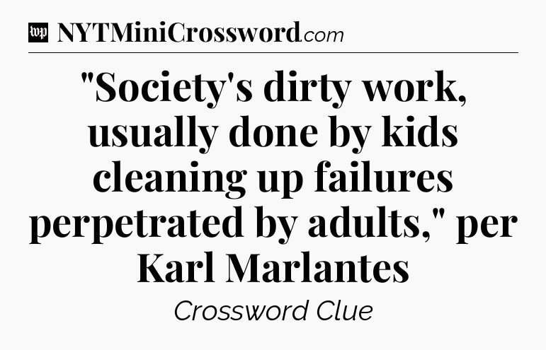 The Answer for “Society’s dirty work, usually done by kids cleaning up failures perpetrated by adults,” per Karl Marlantes Crossword Clue is: