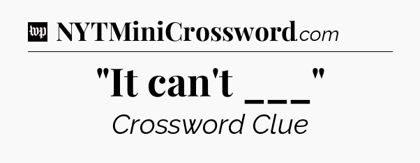 You’ve come to our website, which offers answers for the Washington Post Sunday Crossword game. With this website, you will not need any other help to pass difficult task or level. It helps you with “It can’t ___” crossword clue answers, some additional solutions and useful tips and tricks. The team that named The Washington Post, which has developed a lot of great other games and add this game to the Google Play and Apple stores.