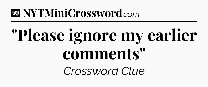 You’ve come to our website, which offers answers for the Washington Post Sunday Crossword game. With this website, you will not need any other help to pass difficult task or level. It helps you with “Please ignore my earlier comments” crossword clue answers, some additional solutions and useful tips and tricks. The team that named The Washington Post, which has developed a lot of great other games and add this game to the Google Play and Apple stores.
