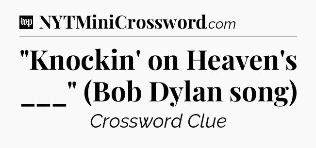 You’ve come to our website, which offers answers for the Washington Post Sunday Crossword game. With this website, you will not need any other help to pass difficult task or level. It helps you with “Knockin’ on Heaven’s ___” (Bob Dylan song) crossword clue answers, some additional solutions and useful tips and tricks. The team that named The Washington Post, which has developed a lot of great other games and add this game to the Google Play and Apple stores.