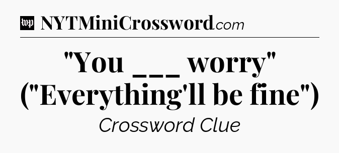 You’ve come to our website, which offers answers for the Washington Post Sunday Crossword game. With this website, you will not need any other help to pass difficult task or level. It helps you with “You ___ worry” (“Everything’ll be fine”) crossword clue answers, some additional solutions and useful tips and tricks. The team that named The Washington Post, which has developed a lot of great other games and add this game to the Google Play and Apple stores.