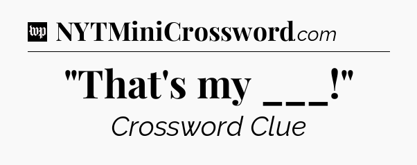You’ve come to our website, which offers answers for the Washington Post Sunday Crossword game. With this website, you will not need any other help to pass difficult task or level. It helps you with “That’s my ___!” crossword clue answers, some additional solutions and useful tips and tricks. The team that named The Washington Post, which has developed a lot of great other games and add this game to the Google Play and Apple stores.