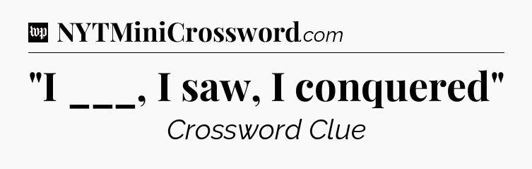 You’ve come to our website, which offers answers for the Washington Post Sunday Crossword game. With this website, you will not need any other help to pass difficult task or level. It helps you with “I ___, I saw, I conquered” crossword clue answers, some additional solutions and useful tips and tricks. The team that named The Washington Post, which has developed a lot of great other games and add this game to the Google Play and Apple stores.