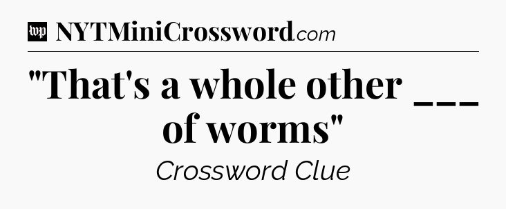 You’ve come to our website, which offers answers for the Washington Post Sunday Crossword game. With this website, you will not need any other help to pass difficult task or level. It helps you with “That’s a whole other ___ of worms” crossword clue answers, some additional solutions and useful tips and tricks. The team that named The Washington Post, which has developed a lot of great other games and add this game to the Google Play and Apple stores.