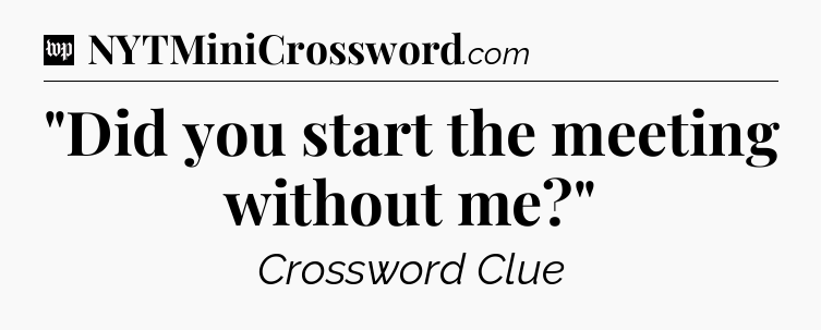 You’ve come to our website, which offers answers for the Washington Post Sunday Crossword game. With this website, you will not need any other help to pass difficult task or level. It helps you with “Did you start the meeting without me?” crossword clue answers, some additional solutions and useful tips and tricks. The team that named The Washington Post, which has developed a lot of great other games and add this game to the Google Play and Apple stores.