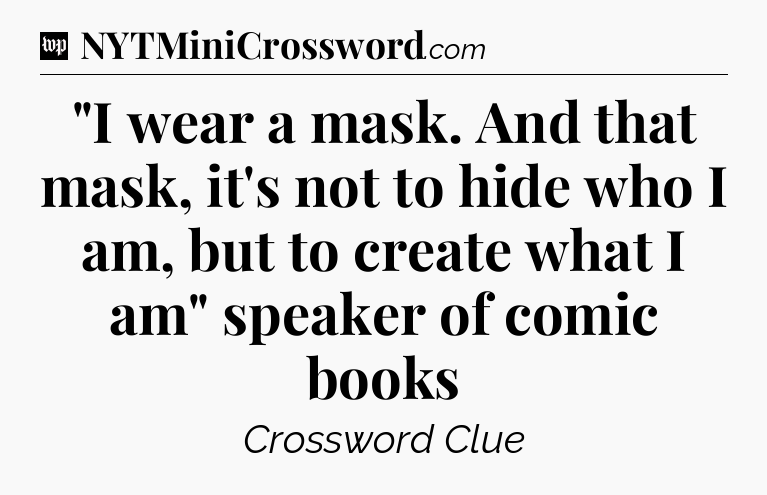 You’ve come to our website, which offers answers for the Washington Post Sunday Crossword game. With this website, you will not need any other help to pass difficult task or level. It helps you with “I wear a mask. And that mask, it’s not to hide who I am, but to create what I am” speaker of comic books crossword clue answers, some additional solutions and useful tips and tricks. The team that named The Washington Post, which has developed a lot of great other games and add this game to the Google Play and Apple stores.