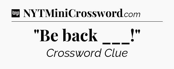 You’ve come to our website, which offers answers for the Washington Post Sunday Crossword game. With this website, you will not need any other help to pass difficult task or level. It helps you with “Be back ___!” crossword clue answers, some additional solutions and useful tips and tricks. The team that named The Washington Post, which has developed a lot of great other games and add this game to the Google Play and Apple stores.