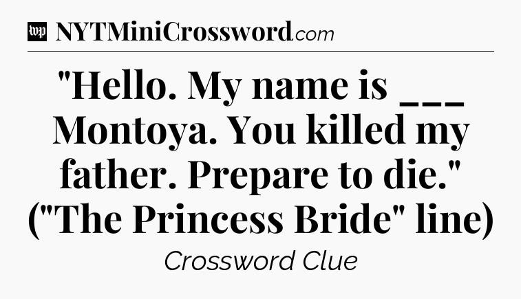 The Answer for “Hello. My name is ___ Montoya. You killed my father. Prepare to die.” (“The Princess Bride” line) Crossword Clue is: