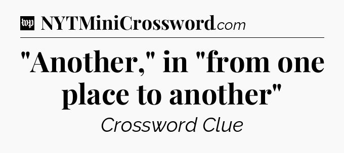 You’ve come to our website, which offers answers for the Washington Post Sunday Crossword game. With this website, you will not need any other help to pass difficult task or level. It helps you with “Another,” in “from one place to another” crossword clue answers, some additional solutions and useful tips and tricks. The team that named The Washington Post, which has developed a lot of great other games and add this game to the Google Play and Apple stores.