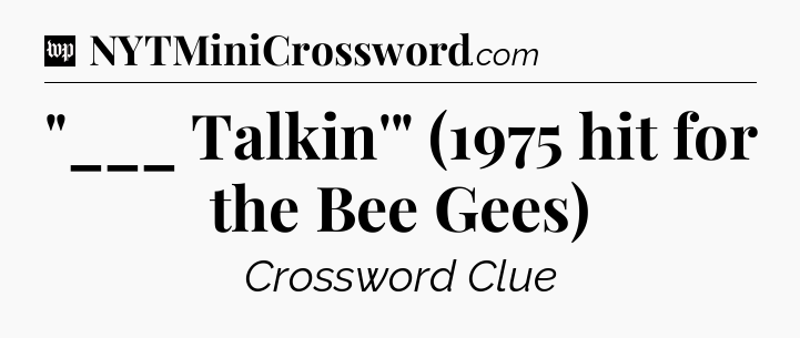 You’ve come to our website, which offers answers for the Washington Post Sunday Crossword game. With this website, you will not need any other help to pass difficult task or level. It helps you with “___ Talkin'” (1975 hit for the Bee Gees) crossword clue answers, some additional solutions and useful tips and tricks. The team that named The Washington Post, which has developed a lot of great other games and add this game to the Google Play and Apple stores.