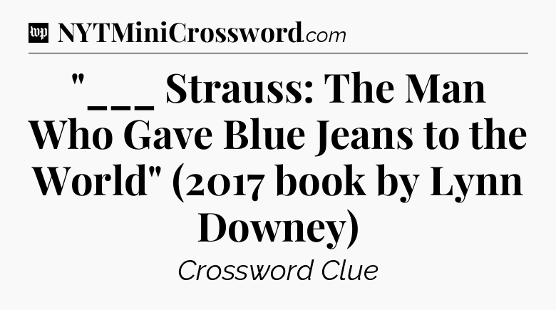 You’ve come to our website, which offers answers for the Washington Post Sunday Crossword game. With this website, you will not need any other help to pass difficult task or level. It helps you with “___ Strauss: The Man Who Gave Blue Jeans to the World” (2017 book by Lynn Downey) crossword clue answers, some additional solutions and useful tips and tricks. The team that named The Washington Post, which has developed a lot of great other games and add this game to the Google Play and Apple stores.