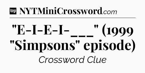 The Answer for “E-I-E-I-___” (1999 “Simpsons” episode) Crossword Clue is: