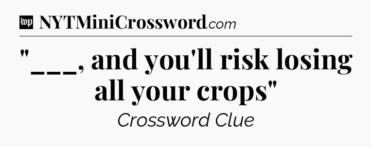 The Answer for “___, and you’ll risk losing all your crops” Crossword Clue is: