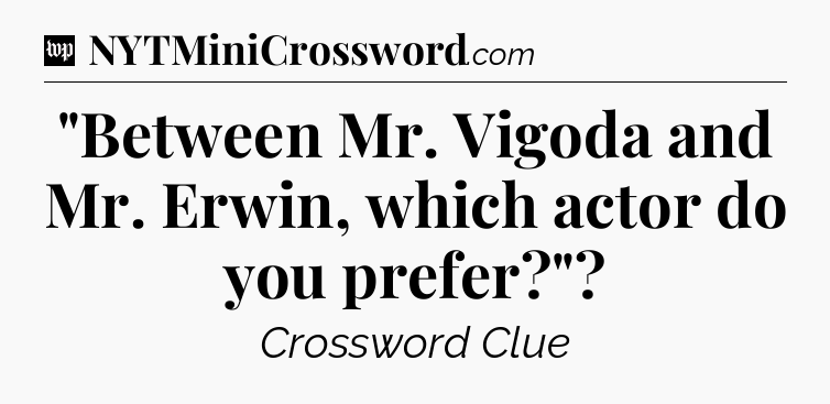 You’ve come to our website, which offers answers for the Washington Post Sunday Crossword game. With this website, you will not need any other help to pass difficult task or level. It helps you with “Between Mr. Vigoda and Mr. Erwin, which actor do you prefer?” crossword clue answers, some additional solutions and useful tips and tricks. The team that named The Washington Post, which has developed a lot of great other games and add this game to the Google Play and Apple stores.
