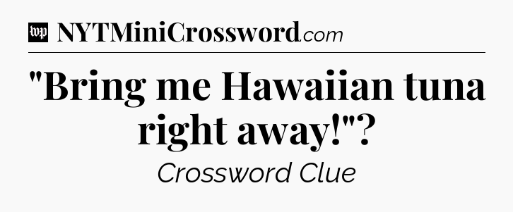 You’ve come to our website, which offers answers for the Washington Post Sunday Crossword game. With this website, you will not need any other help to pass difficult task or level. It helps you with “Bring me Hawaiian tuna right away!” crossword clue answers, some additional solutions and useful tips and tricks. The team that named The Washington Post, which has developed a lot of great other games and add this game to the Google Play and Apple stores.