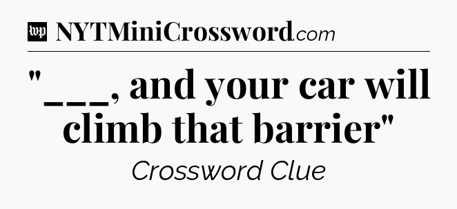 You’ve come to our website, which offers answers for the Washington Post Sunday Crossword game. With this website, you will not need any other help to pass difficult task or level. It helps you with “___, and your car will climb that barrier” crossword clue answers, some additional solutions and useful tips and tricks. The team that named The Washington Post, which has developed a lot of great other games and add this game to the Google Play and Apple stores.