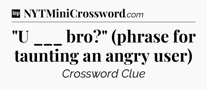 The Answer for “U ___ bro?” (phrase for taunting an angry user) Crossword Clue is: