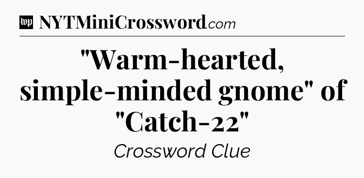 You’ve come to our website, which offers answers for the Washington Post Sunday Crossword game. With this website, you will not need any other help to pass difficult task or level. It helps you with “Warm-hearted, simple-minded gnome” of “Catch-22” crossword clue answers, some additional solutions and useful tips and tricks. The team that named The Washington Post, which has developed a lot of great other games and add this game to the Google Play and Apple stores.