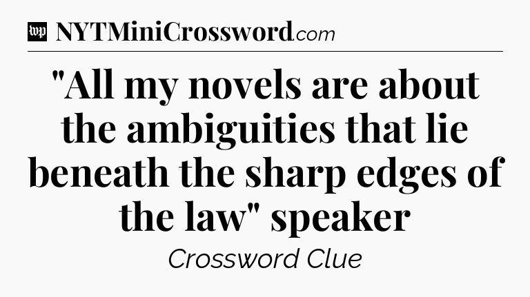 The Answer for “All my novels are about the ambiguities that lie beneath the sharp edges of the law” speaker Crossword Clue is: