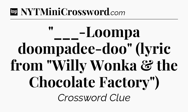 You’ve come to our website, which offers answers for the Washington Post Sunday Crossword game. With this website, you will not need any other help to pass difficult task or level. It helps you with “___-Loompa doompadee-doo” (lyric from “Willy Wonka & the Chocolate Factory”) crossword clue answers, some additional solutions and useful tips and tricks. The team that named The Washington Post, which has developed a lot of great other games and add this game to the Google Play and Apple stores.