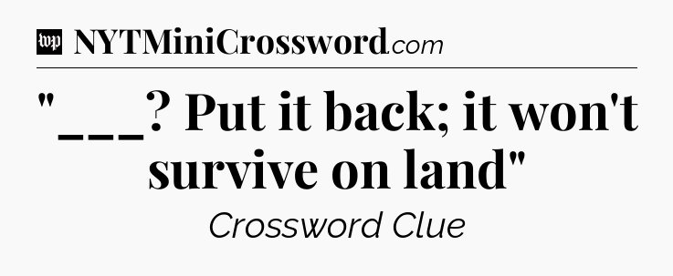 You’ve come to our website, which offers answers for the Washington Post Sunday Crossword game. With this website, you will not need any other help to pass difficult task or level. It helps you with “___? Put it back; it won’t survive on land” crossword clue answers, some additional solutions and useful tips and tricks. The team that named The Washington Post, which has developed a lot of great other games and add this game to the Google Play and Apple stores.
