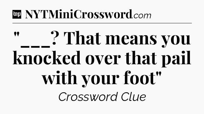 You’ve come to our website, which offers answers for the Washington Post Sunday Crossword game. With this website, you will not need any other help to pass difficult task or level. It helps you with “___? That means you knocked over that pail with your foot” crossword clue answers, some additional solutions and useful tips and tricks. The team that named The Washington Post, which has developed a lot of great other games and add this game to the Google Play and Apple stores.