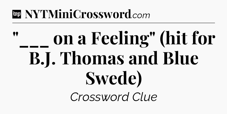 The Answer for “___ on a Feeling” (hit for B.J. Thomas and Blue Swede) Crossword Clue is:
