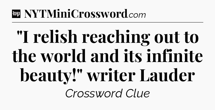 You’ve come to our website, which offers answers for the Washington Post Sunday Crossword game. With this website, you will not need any other help to pass difficult task or level. It helps you with “I relish reaching out to the world and its infinite beauty!” writer Lauder crossword clue answers, some additional solutions and useful tips and tricks. The team that named The Washington Post, which has developed a lot of great other games and add this game to the Google Play and Apple stores.