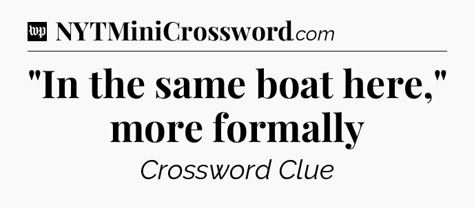The Answer for “In the same boat here,” more formally Crossword Clue is: