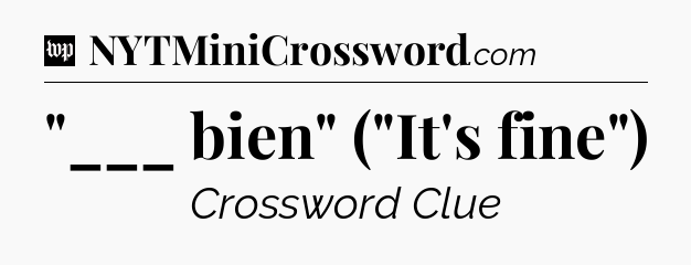 You’ve come to our website, which offers answers for the Washington Post Sunday Crossword game. With this website, you will not need any other help to pass difficult task or level. It helps you with “___ bien” (“It’s fine”) crossword clue answers, some additional solutions and useful tips and tricks. The team that named The Washington Post, which has developed a lot of great other games and add this game to the Google Play and Apple stores.