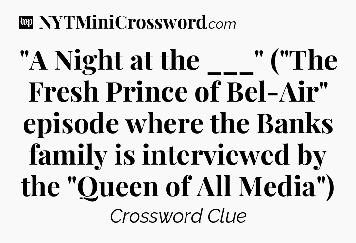 You’ve come to our website, which offers answers for the Washington Post Sunday Crossword game. With this website, you will not need any other help to pass difficult task or level. It helps you with “A Night at the ___” (“The Fresh Prince of Bel-Air” episode where the Banks family is interviewed by the “Queen of All Media”) crossword clue answers, some additional solutions and useful tips and tricks. The team that named The Washington Post, which has developed a lot of great other games and add this game to the Google Play and Apple stores.