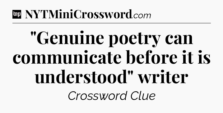 The Answer for “Genuine poetry can communicate before it is understood” writer Crossword Clue is: