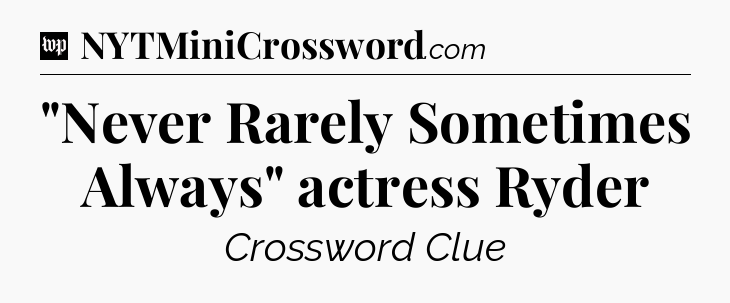 You’ve come to our website, which offers answers for the Washington Post Sunday Crossword game. With this website, you will not need any other help to pass difficult task or level. It helps you with “Never Rarely Sometimes Always” actress Ryder crossword clue answers, some additional solutions and useful tips and tricks. The team that named The Washington Post, which has developed a lot of great other games and add this game to the Google Play and Apple stores.