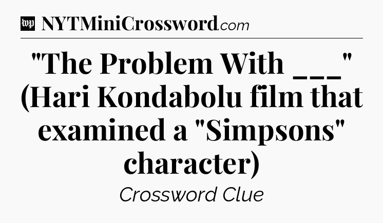 You’ve come to our website, which offers answers for the Washington Post Sunday Crossword game. With this website, you will not need any other help to pass difficult task or level. It helps you with “The Problem With ___” (Hari Kondabolu film that examined a “Simpsons” character) crossword clue answers, some additional solutions and useful tips and tricks. The team that named The Washington Post, which has developed a lot of great other games and add this game to the Google Play and Apple stores.