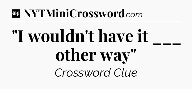 You’ve come to our website, which offers answers for the Washington Post Sunday Crossword game. With this website, you will not need any other help to pass difficult task or level. It helps you with “I wouldn’t have it ___ other way” crossword clue answers, some additional solutions and useful tips and tricks. The team that named The Washington Post, which has developed a lot of great other games and add this game to the Google Play and Apple stores.
