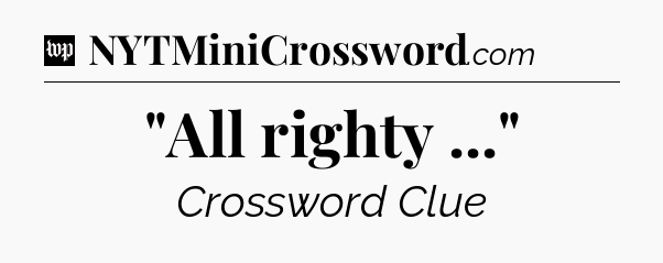 You’ve come to our website, which offers answers for the Washington Post Sunday Crossword game. With this website, you will not need any other help to pass difficult task or level. It helps you with “All righty …” crossword clue answers, some additional solutions and useful tips and tricks. The team that named The Washington Post, which has developed a lot of great other games and add this game to the Google Play and Apple stores.