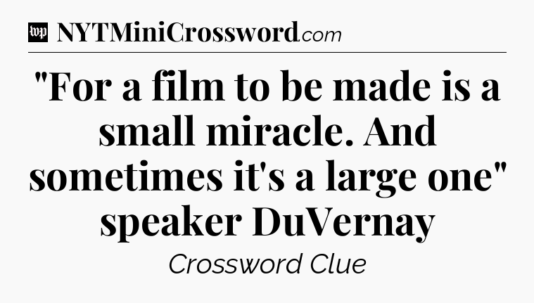 You’ve come to our website, which offers answers for the Washington Post Sunday Crossword game. With this website, you will not need any other help to pass difficult task or level. It helps you with “For a film to be made is a small miracle. And sometimes it’s a large one” speaker DuVernay crossword clue answers, some additional solutions and useful tips and tricks. The team that named The Washington Post, which has developed a lot of great other games and add this game to the Google Play and Apple stores.