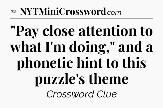 The clue “”Pay close attention to what I’m doing,” and a phonetic hint to this puzzle’s theme” most recently appeared in a WSJ Crossword on January 2, 2025.