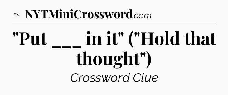 The clue “”Put ___ in it” (“Hold that thought”)” most recently appeared in a WSJ Crossword on January 24, 2023.