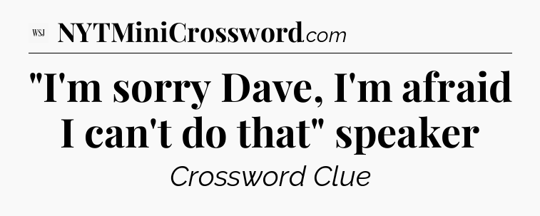 The clue “”I’m sorry Dave, I’m afraid I can’t do that” speaker” most recently appeared in a WSJ Crossword on January 25, 2024.