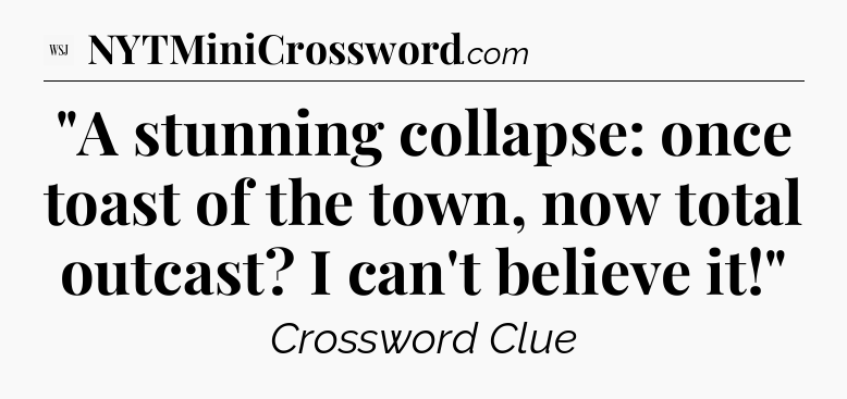 The clue “”A stunning collapse: once toast of the town, now total outcast? I can’t believe it!”” most recently appeared in a WSJ Crossword on January 27, 2024.