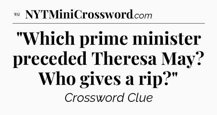 The clue “”Which prime minister preceded Theresa May? Who gives a rip?”” most recently appeared in a WSJ Crossword on January 27, 2024.
