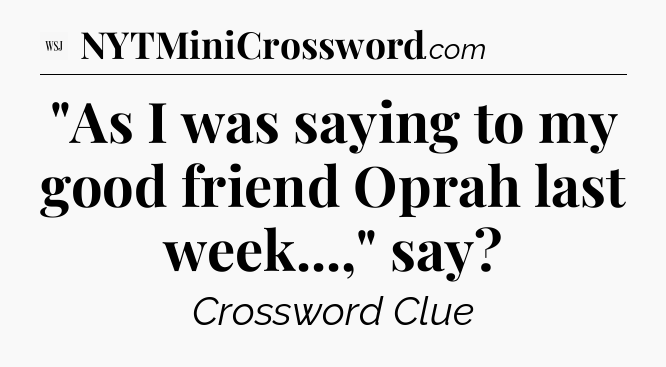 The Answer for “As I was saying to my good friend Oprah last week…,” say – WSJ Crossword Clue Solution is: