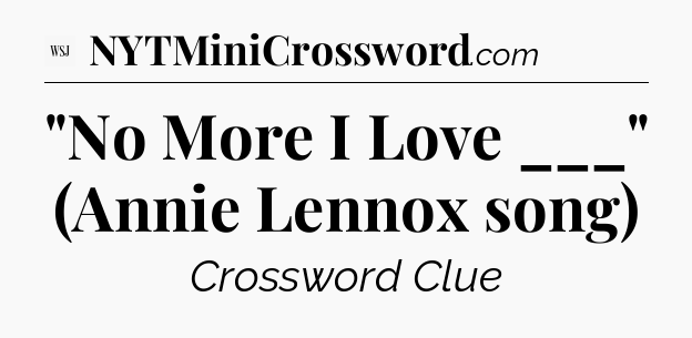 The clue “”No More I Love ___” (Annie Lennox song)” most recently appeared in a WSJ Crossword on January 31, 2023.