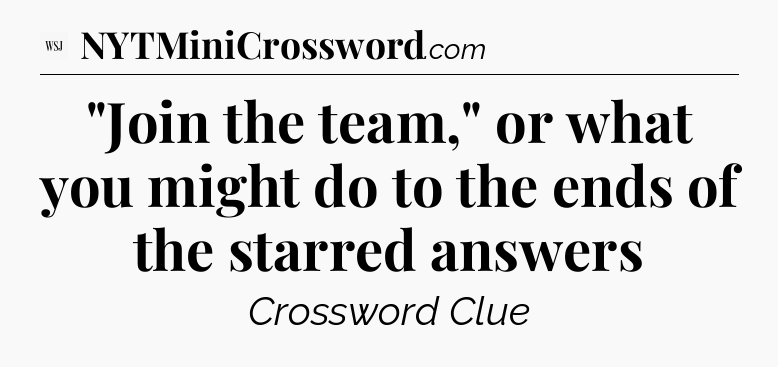 The Answer for “Join the team,” or what you might do to the ends of the starred answers – WSJ Crossword Clue Solution is: