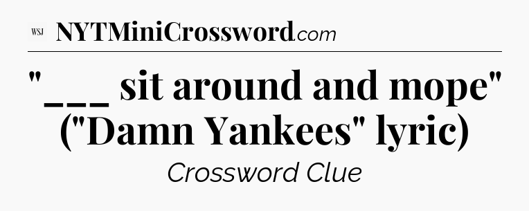 The clue “”___ sit around and mope” (“Damn Yankees” lyric)” most recently appeared in a WSJ Crossword on October 24, 2023.