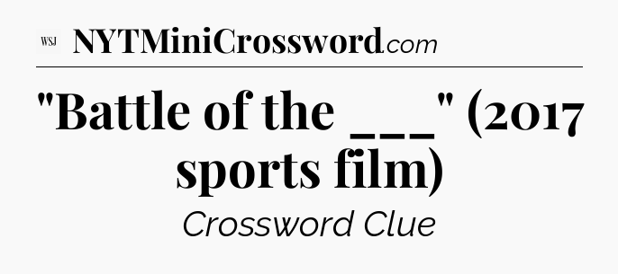 The clue “”Battle of the ___” (2017 sports film)” most recently appeared in a WSJ Crossword on October 24, 2025.