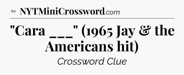 The clue “”Cara ___” (1965 Jay & the Americans hit)” most recently appeared in a WSJ Crossword on October 26, 2024.