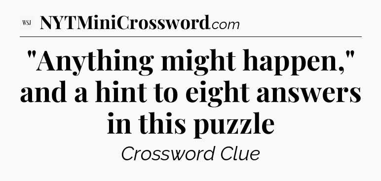 The clue “”Anything might happen,” and a hint to eight answers in this puzzle” most recently appeared in a WSJ Crossword on October 28, 2023.