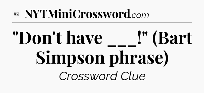 The clue “”Don’t have ___!” (Bart Simpson phrase)” most recently appeared in a WSJ Crossword on November 24, 2025.